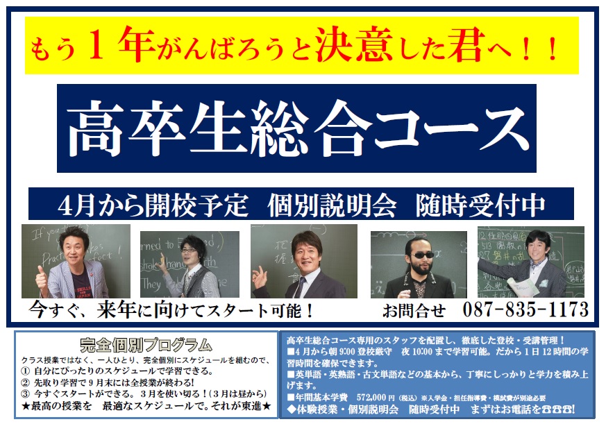 私たちは、あなたの「もう一年」が、ただ学力を上げるだけの時間ではなく、人生において「あの時、逃げずにやり遂げて良かった」と思える、誇り高い時間になることを確信しています。