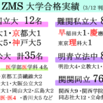 2026 ZMS合格実績 今年もがんばってくれました。 ただ・・・まだ集計中・・・、国公立大学・後期日程の発表もまだ…とりあえず速報値です。合格した生徒さん、おめでとう! 残念だった生徒さん…本当にごめんなさい。でも、自分の夢のために、もう1年、 […] 公開済み: 2026年3月17日更新: 2026年3月17日作成者: 明石校長カテゴリー: 東進衛星予備校 高松サンフラワー通り校